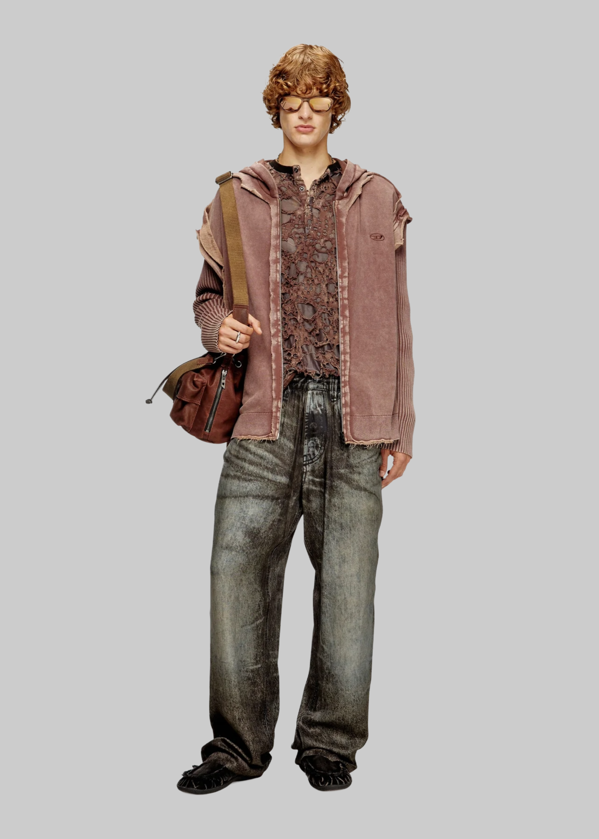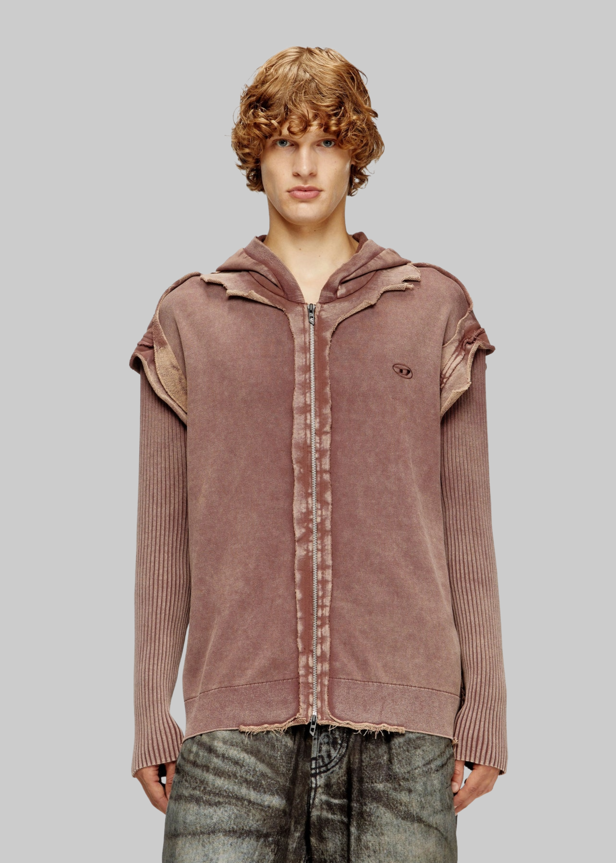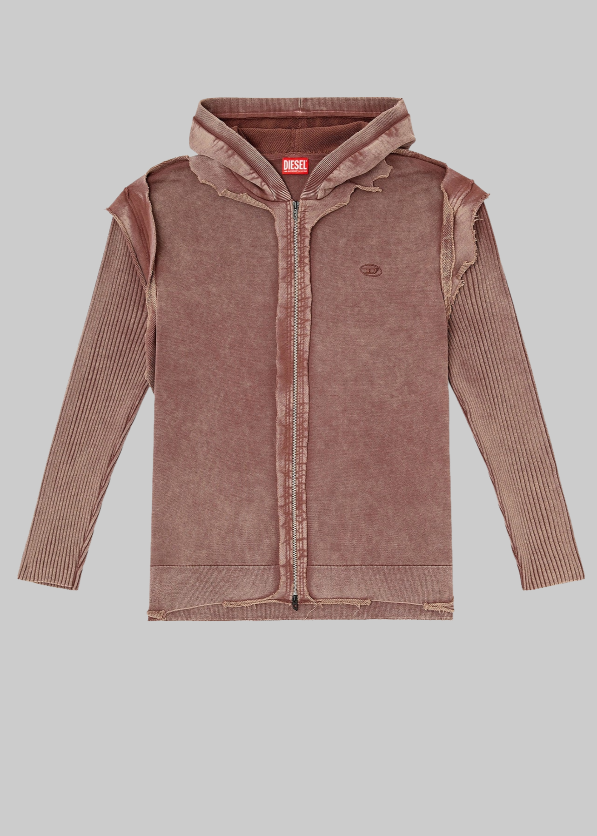Felpa con cappuccio e chiusura lampo centrale con effetto distressed.