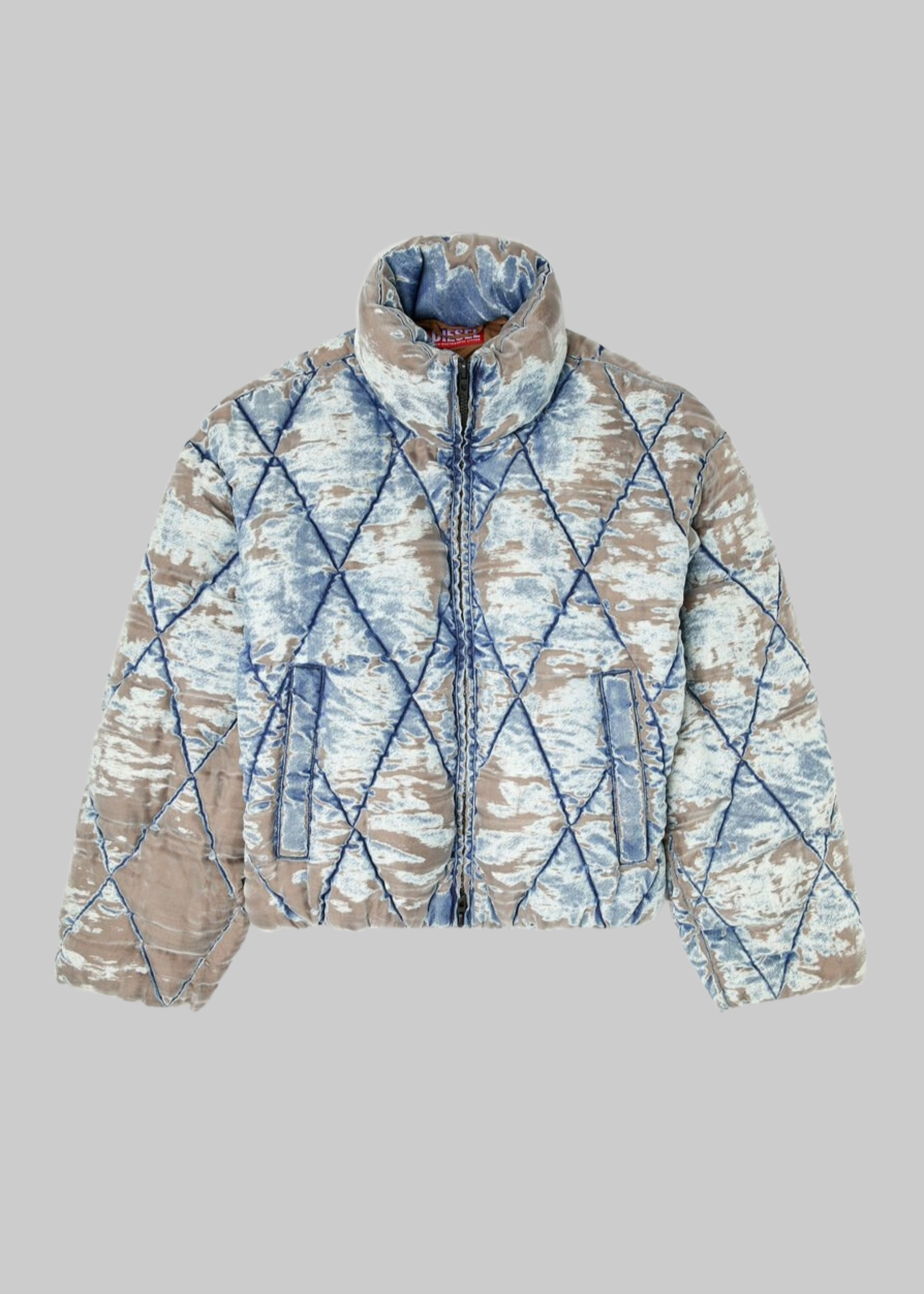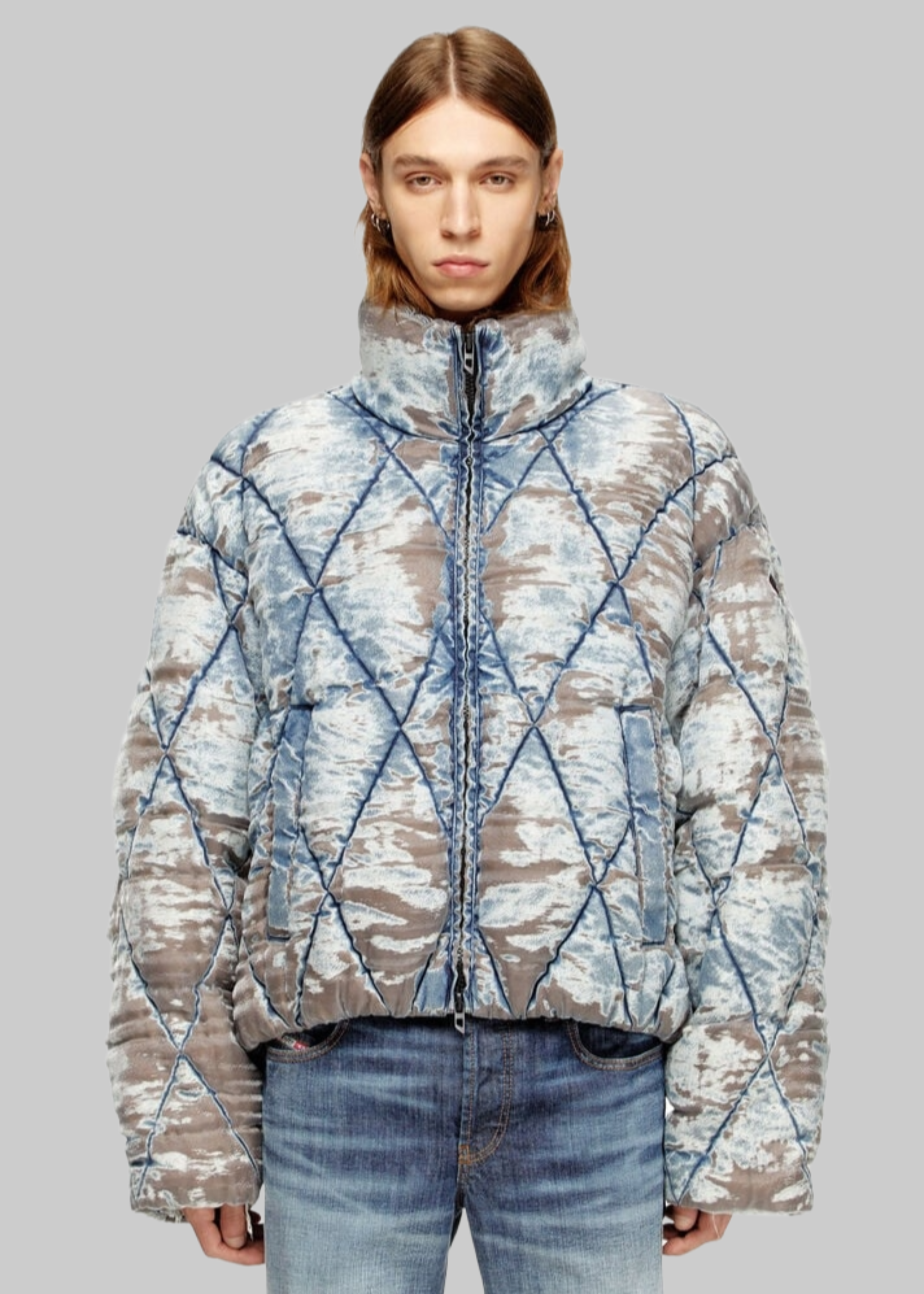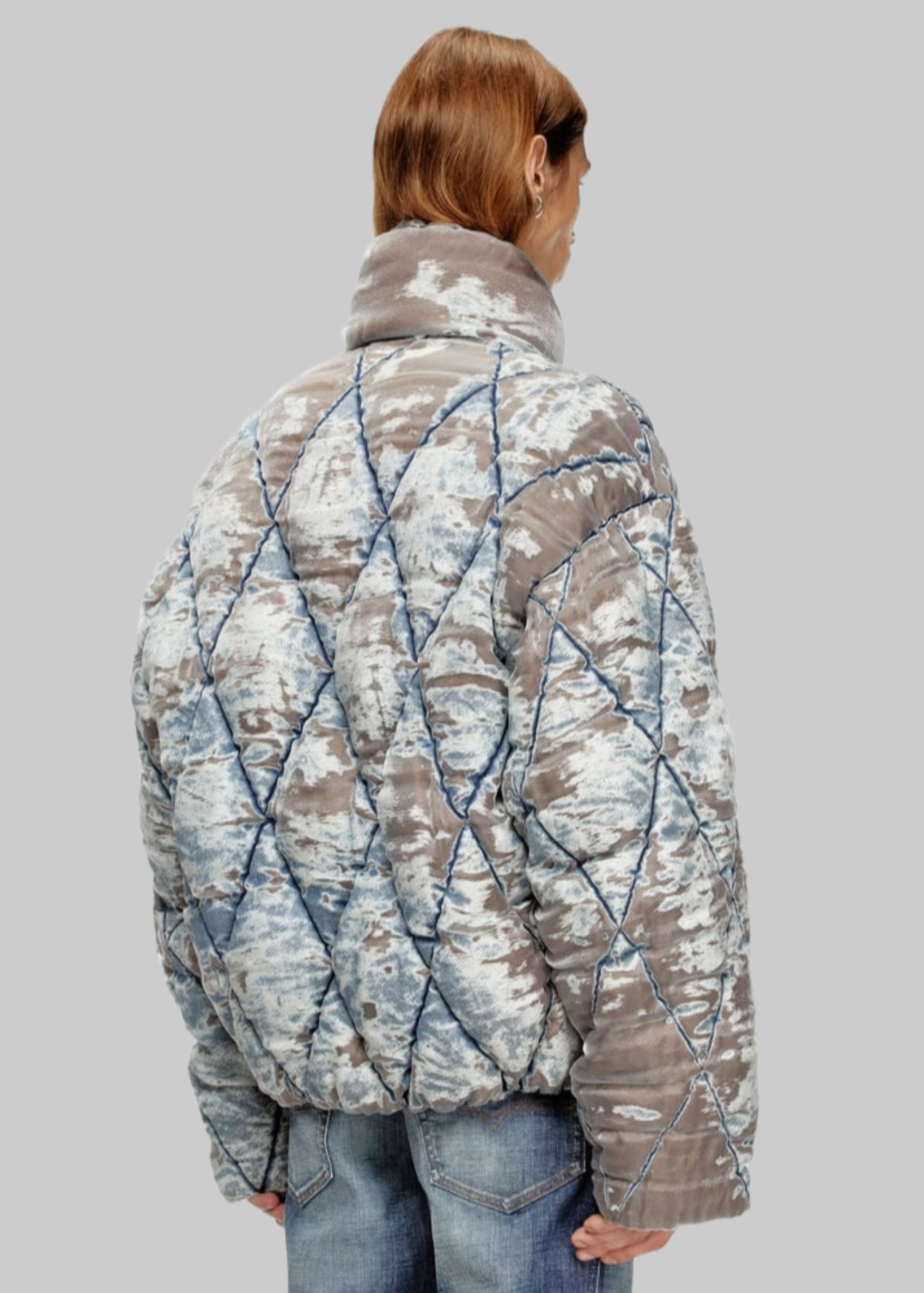 Puff jacket stampata a collo alto, vestibilità oversize.