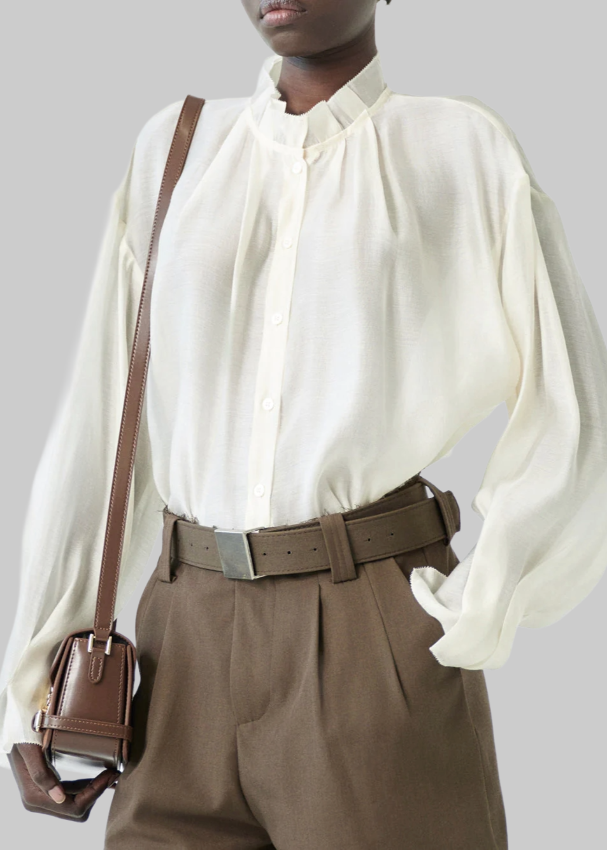 Camicia in organza con chiusura a bottoni.