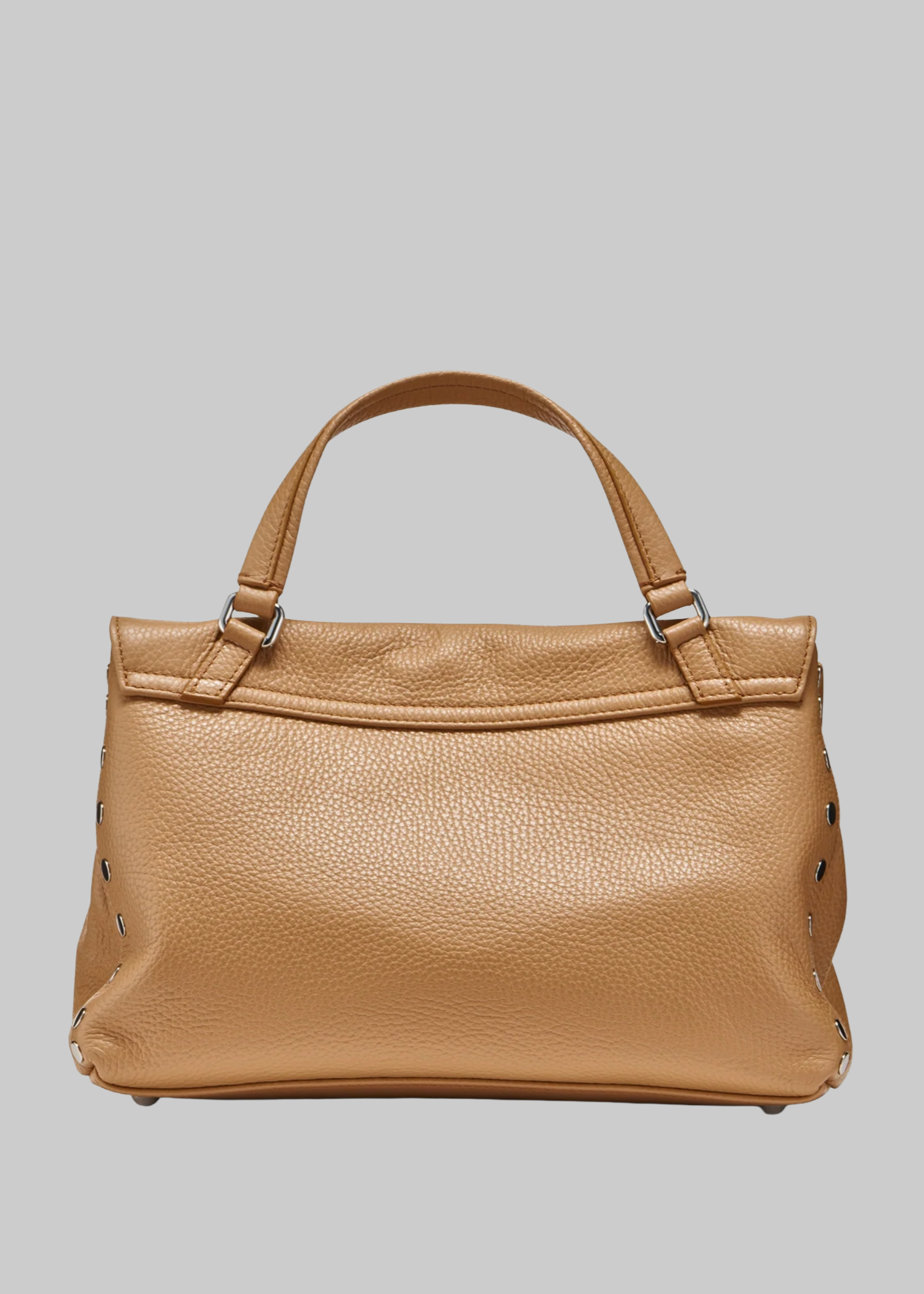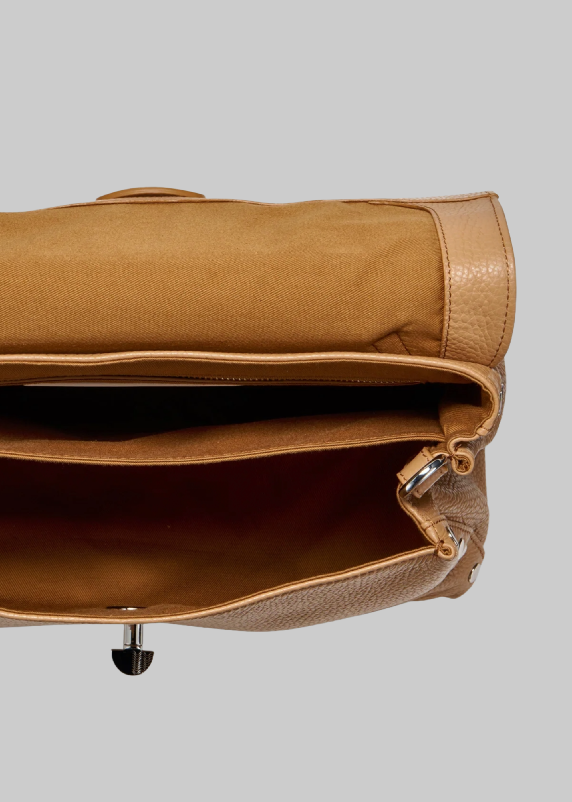 Borsa zanellato modello postina in vera pelle color cantucci made in italy
